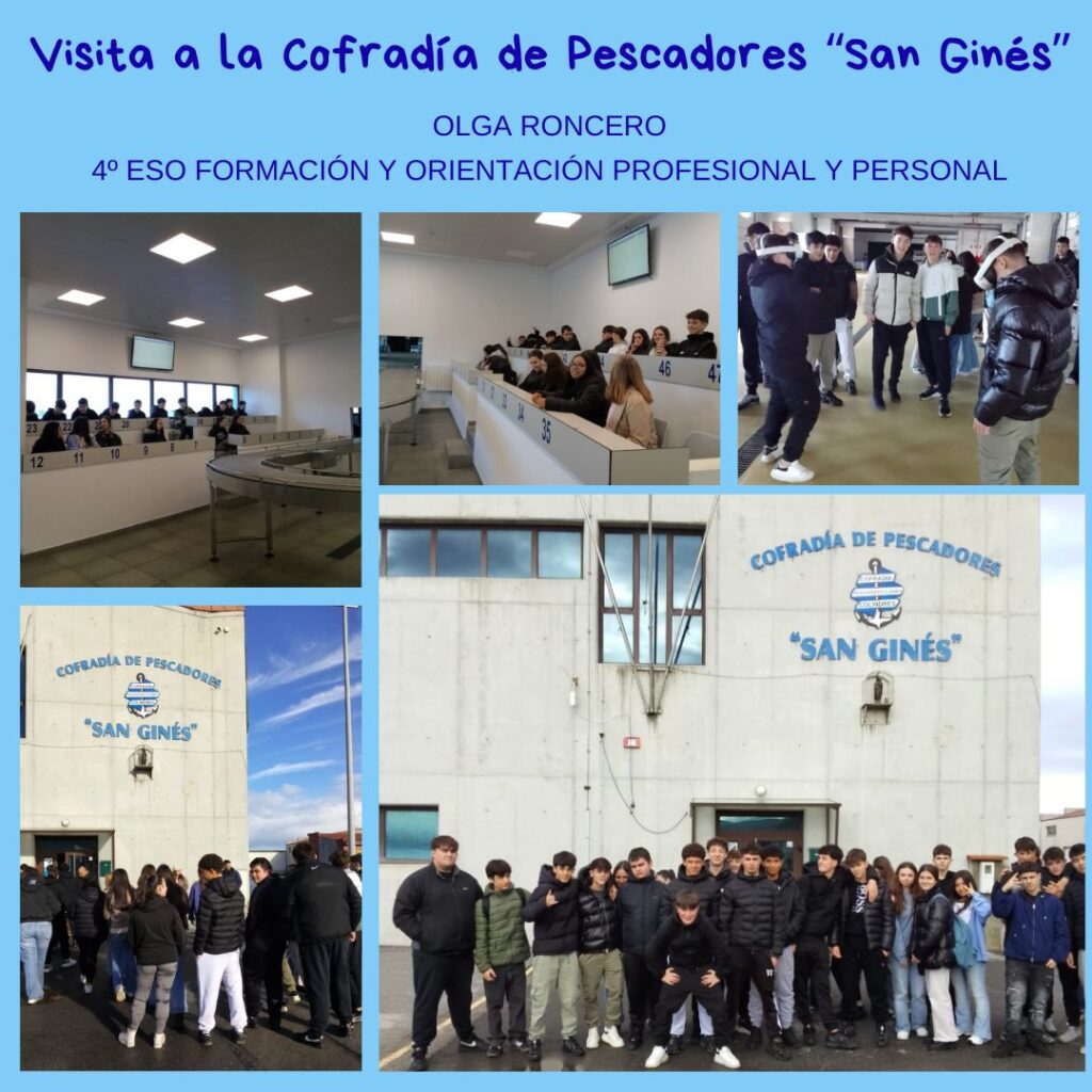 Los alumnos de 4º de la ESO estudiantes de la materia de FOPP de la profesora Olga Roncero, han visitado el 26/11/2025 la cofradía de pescadores «San Ginés» como parte de las actividades planificadas para conocer el entorno de Colindres. Durante la misma pudieron conocer el funcionamiento de una subasta de pescado, así como el funcionamiento de un barco y las innovaciones que están incorporando.