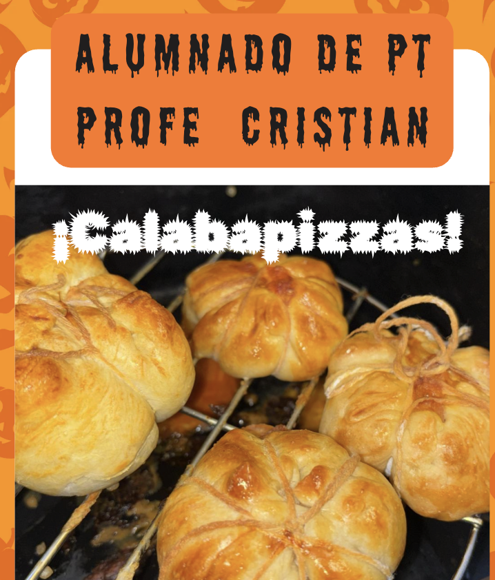Enhorabuena al alumnado de PT que ha puesto mucho arte en estas ricas calabazas con relleno de pizza y a su profe Cristian Pernández Ferrero.