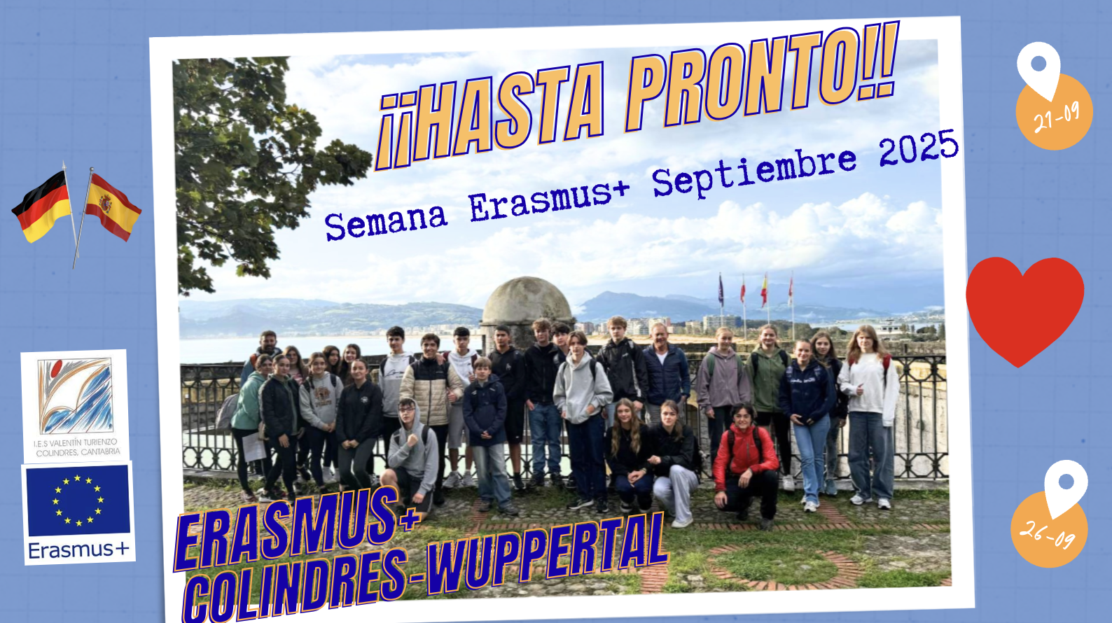 En nuestras redes sociales hemos ido publicando algunas fotos de la semana Erasmus+ con nuestros colegas alemanes de Wuppertal. Han sido unos días fantásticos llenos de actividades, deportes, visitas a lugares emblemáticos de nuestra zona pero, sobre todo, han sido unos días de compartir risas, de hacer amigos y de vivir una experiencia única.