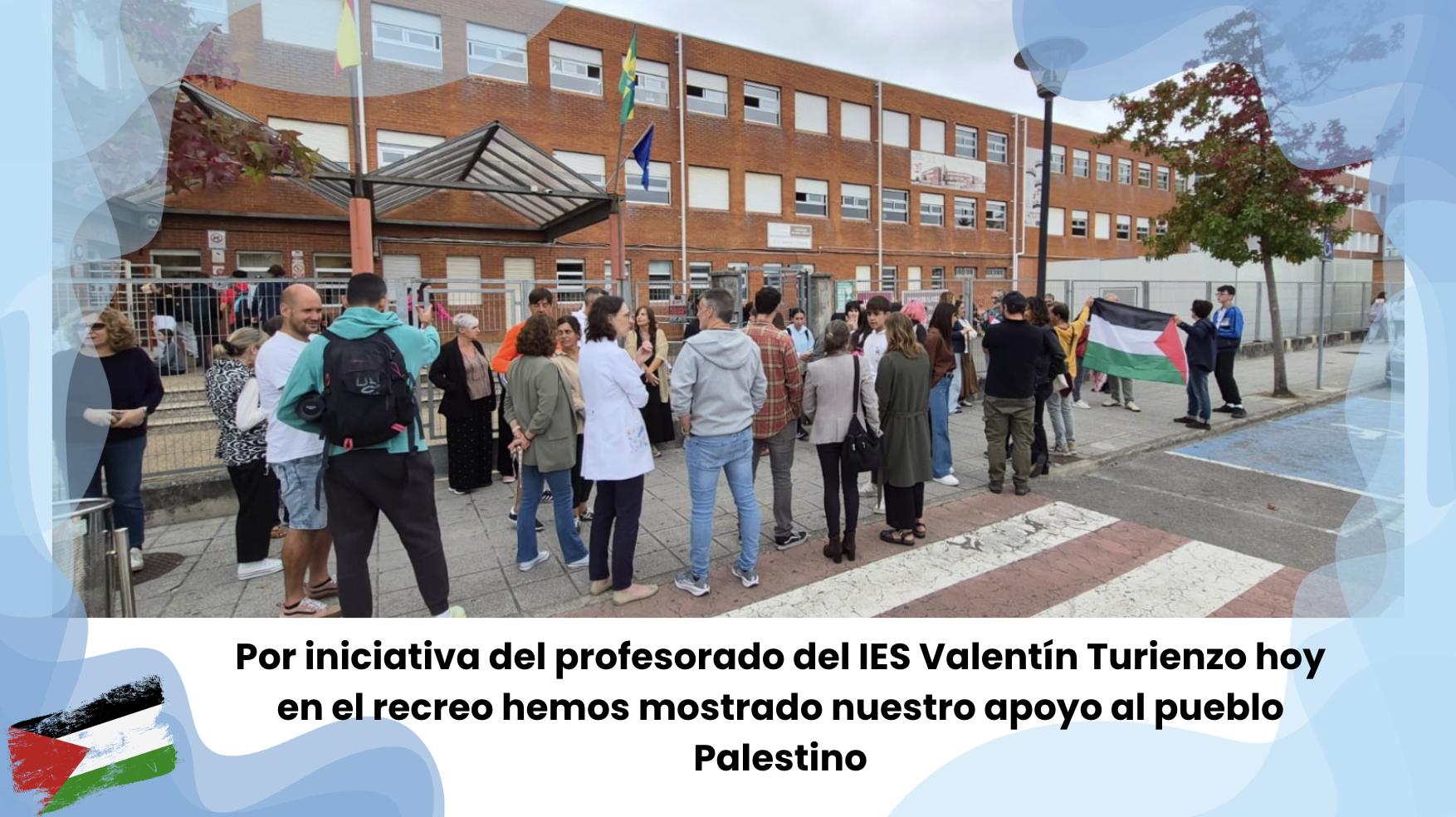 Hoy, 3 de octubre, y por iniciativa del profesorado y alumnado del centro se ha realizado una muestra de apoyo al pueblo palestino durante el recreo.